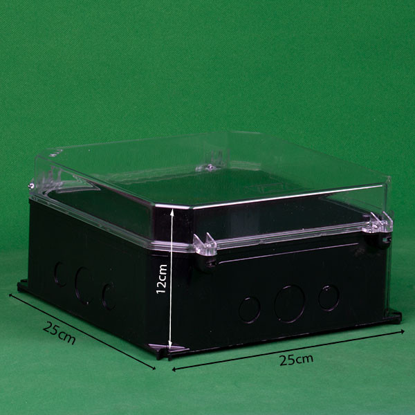 جعبه پلی کربنات سایز 25x25 و عمق 12 سانتیمتر تابلو پلی کربنات البرز یکی از اجزای تجهیزات الکتریکی به شمار می آید. تجهیزاتی از قبیل انواع فیوزها ، کنتاکتورها ، کلیدهای محافظ جان ، نمایشگرهای ولتاژ و ..... درون جعبه قرار می گیرند . این جعبه ها در ابعاد و اندازه های متفاوتی تولید شده اند. جنس جعبه از پلی کربنات مشکی رنگ ساخته شده است و دارای ابعاد 25 در 25 سانتیمتر و عمق 12 سانتیمتری می باشد. درب جعبه شفاف بوده و قابلیت عبور نور و مشاهده محتویات آن را ممکن می سازد. از این محصول به عنوان جعبه تقسیم و یا جعبه فیوز نیز استفاده می شود.
