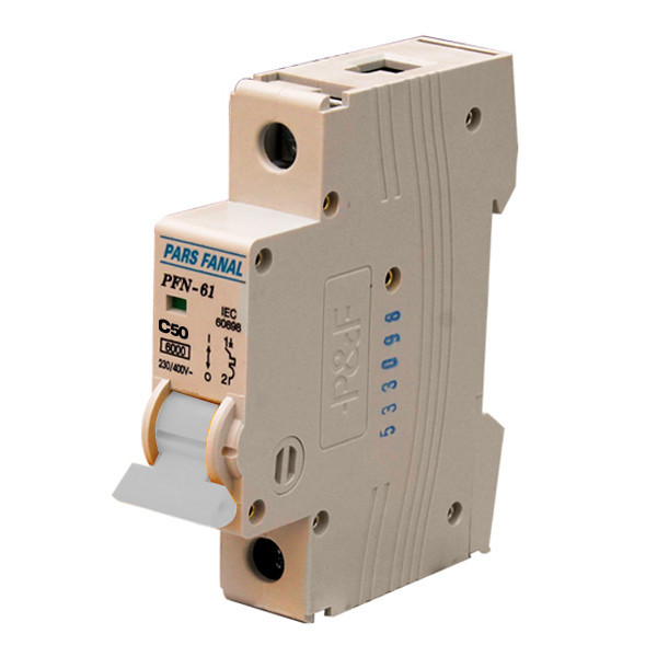 کلید مینیاتوری (MCB ) وسیله ای حفاظتی است که از تجهیزات الکتریکی و صنعتی در برابر آسیب های ناشی از اضافه بار و یا اتصال کوتاه محافظت می نماید.کلید های مینیاتوری جریان متناوب پارس فانال در سه تیپ روشنایی (B) ، موتوری (C) و سخت موتوری (D) در انواع تک پل ، تک پل با نول (1P+N) ، دو پل ، سه پل ، سه پل با نول (3P+N) و چهار پل تولید می شوند. این محصول کلید مینیاتوری تک فاز 50 آمپر تیپ C با ظرفیت قطع 6KA می باشد.