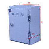 تابلو برق روکار در محیط های بیرونی استفاده می شود و بر روی دیوار نصب می شود و از تجهیزات و اتصالات الکتریکی محافظت می کند. استفاده از تابلو برق ایمنی افراد را حین کار افزایش می دهد. تابلوها در ابعاد و اندازه های مختلفی موجود هستند. در تولید این جعبه از مرغوب ترین رنگ پودری الکترواستاتیک استفاده شده است. ضخامت ورق تابلو 1 میلیمتر و ابعاد آن برابر با 30در 40در 21 سانتیمتر می باشد. این تابلو فلزی دارای قسمتهای پانج شده برای چراغ سیگنال است و به راحتی بر روی دیوار قابل نصب است.
