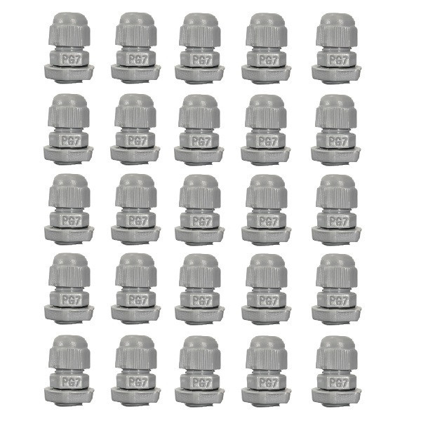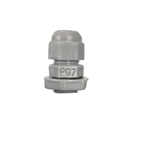 این محصول به رنگ طوسی است و در بسته های 25 عددی به فروش میرسد. گلند pg7 از بهترین مواد اولیه تولید شده است. گام رزوه آن 1.27 میلیمتر و بازه سایز کابل بین 3 تا 6.5 میلیمتر است.