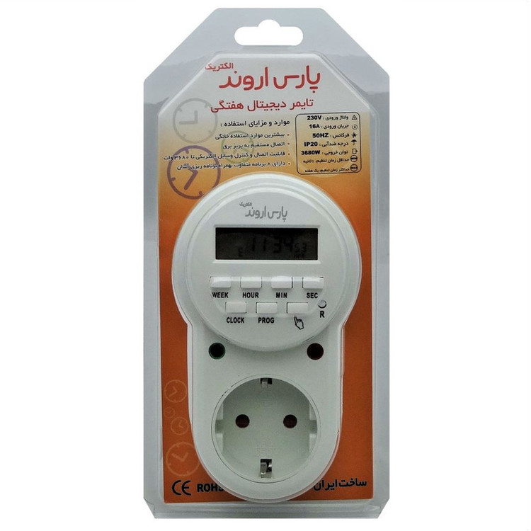 تایمر دیجیتال شرکت پارس اروند الکتریک ( صنعت الکتریک ایرانیان اروند) ، قابلیت طراحی 8 برنامه وصل و 8 برنامه قطع به صورت هفتگی و روزانه را دارد . بطوریکه هر وسیله برقی را می توان به راحتی با این دستگاه قطع و وصل نمود. همچنین این محصول داری باطری back up جهت حفظ برنامه در زمان قطع برق و صفحه نمایشکر LCD ،جهت نمایش ساعت و روزهای هفته می باشد. این محصول برای مصارف عمومی نظیر خاموش و روشن کردن کولر, پمپ آب باغ و باغچه، پمپ هوا ساز و یا گرم کن آکواریوم ، تابلوی مغازه ، شارژر موبایل و لپ تاپ، چراغ های محوطه و ..... کاربرد دارد.