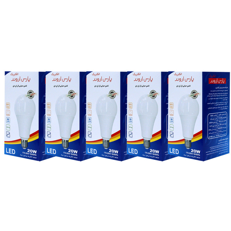 لامپ 20 وات پارس اروند الکتریک کد PA-AB20W پایه E27 بسته 5 عددی
