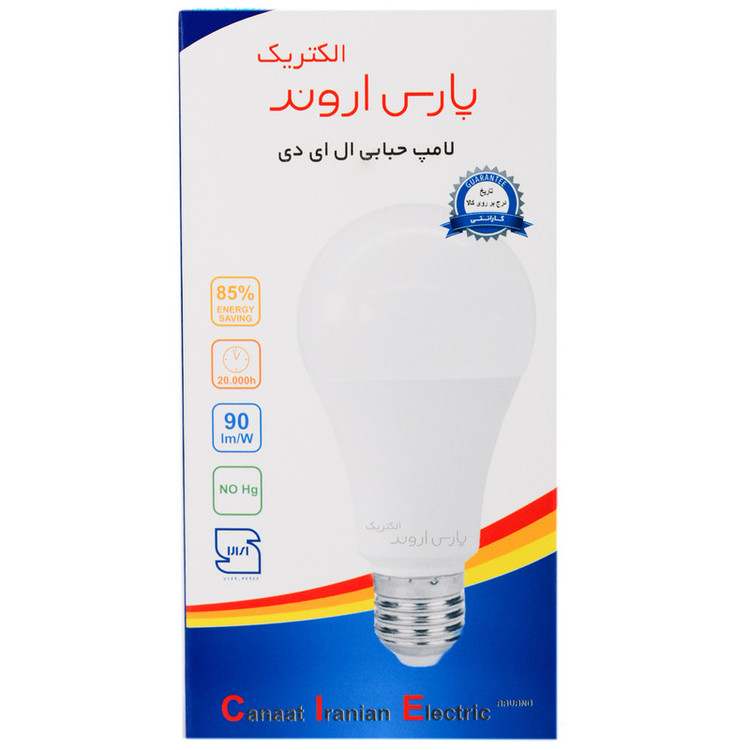 لامپ الایدی فوق یکی از محصولات تولیدی شرکت پارس اروند است که تحت عنوان لامپ LED به بازار عرضه میشود. این لامپ راندمان بالایی دارد و بیشترین مقدار انرژی مصرفی را صرف تولید نور میکند؛ ازاینرو حرارت تولیدی کمی دارد. این محصول توانسته در ردهی انرژی A+ قرار گیرد و در کنار این راندمان مناسب، از طول عمر بالایی برخوردار است. طول عمر این محصول 20000 ساعت بوده و کیفیت ساخت مناسبی دارد. از دیگر مشخصات این لامپ میتوان به پایهی E27 آن اشاره کرد که برای نصب روی سرپیچهای E27 مناسب است. حباب قرارگرفته روی این لامپ مقاومت بالایی در برابر ضربه دارد و میتوان آن را در مکانهایی که احتمال برخورد ضربه با لامپ وجود دارد، استفاده کرد. این محصول موفق به اخذ استاندارد RoHS شده و دلیل آن استفادهنکردن از عناصر مضر سرب و جیوه در ساخت لامپ است. نور خروجی این محصول معادل یک لامپ 100 وات رشتهای اندازهگیری شده است.