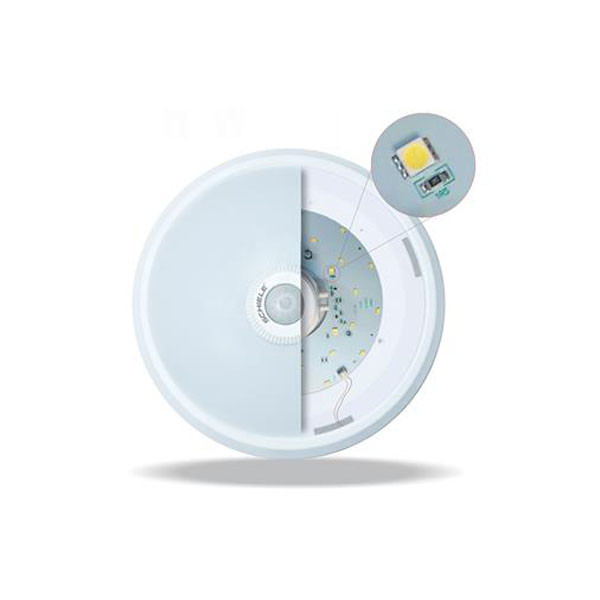 چراغ اضطراری سنسوردار شیله مدل SC 976E در دسته چراغ های سقفی این شرکت قرار می گیرد و در ساختمان آن ها یک لامپ دوازده واتی از نوع SMD قرار گرفته است و کفه یا بخشی از چراغ که به سقف متصل می شود از جنس پلاستیک مرغوب( ABS) ورویه از جنس PC می باشد. چراغ اضطراری سنسوردار شیله مجهز به باتری و مدار شارژر است . از مزایای استفاده از چراغ اضطراری شیله می توان به فوق باریک بودن آن اشاره کرد همچنین به دفعات زیاد قابلیت روشن و خاموش شدن دارد و می تواند در زمان قطع برق به صورت خودکار حدودا 4 ساعت روشن بماند. چراغ سنسوردار شیله مجهز دارای توان 12 وات در حالت نرمال و توان 1.2 وات در حالت اضطراری می باشد.