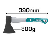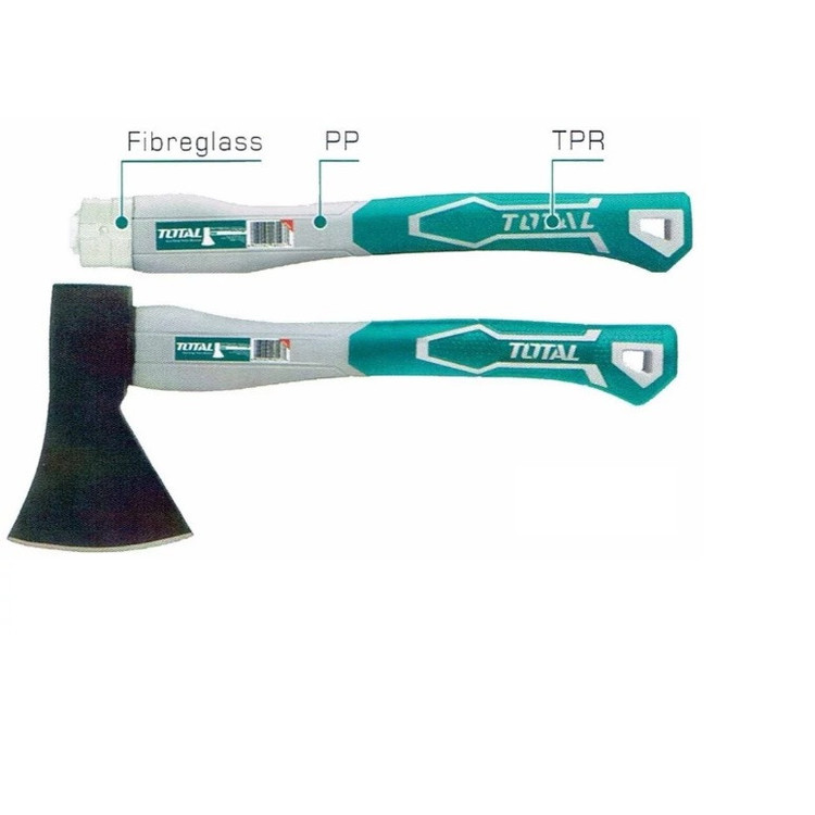 تبر 800 گرمی شرکت توتال دارای سری فولادی با روکش زنگ نزن مشکی رنگ باکیفیت است که مقاومت بالایی در در برابر ضربات و فشارهای وارد شده از خود نشان میدهد. این تیغهی تیز که قدرت برش بالایی دارد، به روش دراپ فورج ساخته شده و با یک کاور لاستیکی پوشانده شده است.دستهی از جنس فایبرگلاس ارگونومیک این تبر در عین وزن کم، مقاومت خوبی دارد و به گونه ای ساخته شده که در کاربردهای درازمدت، در دست کاربر عرق نکند. دسته و تیغهی این تبر نیز به خوبی به همدیگر متصل شده اند.از این تبر میتوانید به عنوان یکی از ابزارهایی که برای قطع درختان کوچک یا شاخهی درختان به کار میروند استفاده کنید؛ با این توضیح که در مقایسه با ابزارهای مشابه، این ابزار دستی، استفادهی آسان، وزن کم و قیمت پایین تری دارد. این تبر 39 سانتی متری، ساخت کشور چین است.