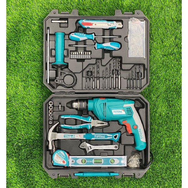 مجموعه 115 عددی ابزار توتال مدل یک مجموعه ابزار کامل مورد نیاز در هر خانه محیط کار یا برای افراد فنی شاغل در مشاغل گوناگون است این مجموعه ابزار شامل یک عدد دریل چکشی برقی 650 وات توتال با سه نظام فلزی 13 میلی متر است که دارای دکمه کنترل سرعت، حالت چپ گرد و راستگرد، قفل سوییچ و حالت چکشی و سوراخکاری می باشد. همچنین به همراه این مجموعه یک عدد پیچ گوشتی تخت، یک عدد پیچ گوشتی 4 سو ، یک عدد چکش میخ کش با دسته فایبرگلاس یک عدد کاتر یک عدد انبردست 7 اینچ یک عدد آچار فرانسه 6 اینچ یک عدد رابط سر پیچ گوشتی مگنت یک عدد تراز مگنت دار 22.5 سانت توتال، 30 عدد پیچ و 30 عدد رول پلاک در سه سایز مختلف یک عدد متر سه متری 4 عدد مته چوب 5 عدد مته دیوار و 5 عدد مته آهن و 10 عدد سر پیچ گوشتی یک عدد سوکت بیت و 6 عدد بکس 1/4 در سایزهای مختلف عرضه می گردد که همگی از محصولات با کیفیت توتال هستند که در یک کیف شکیل BMC قرار دارد. اگر دنبال یک سری ابزار مناسب برای انجام امور خانگی یا حرفه ایی خود هستید ست ابزار توتال مدل THKTHP1012 را به شما پیشنهاد می کنیم این مجموعه ابزار توسط کیوسک ابزار عرضه می گردد