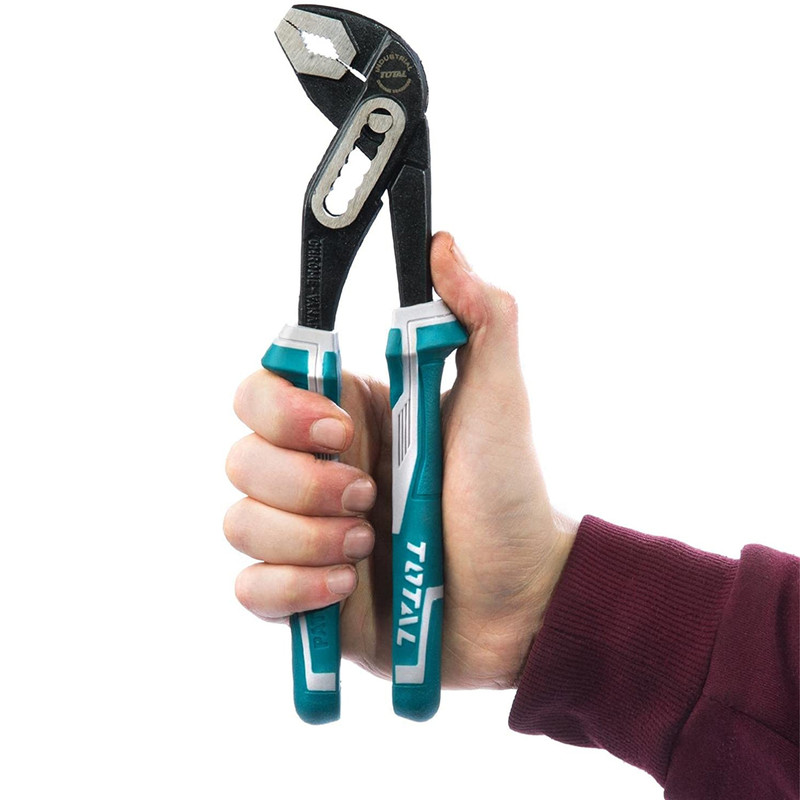 انبر کلاغی توتال کد THT281006 سایز 10 اینچ . از انبر کلاغی برای فعالیتهای صنعتی مختلف، مکانیکی، لولهکشی، تاسیسات و ... استفاده میشود. گرفتن، نگهداشتن، باز یا بستهکردن و تعمیر لولهها و نیز باز و بستهکردن پیچها و مهرهها و ... همگی کارهایی هستند که انجام آنها با کمک این انبر بسیار قوی راحتتر میشود. انبر واتر پمپ یا انبر کلاغی توتال، بدنهای از جنس فولاد کروم وانادیوم ضد زنگ دارد و به دستهای ارگونومیک مجهز است تا کاربران بتوانند راحتتر با آن کار کنند. فکهای انبر کلاغی 10 اینچ توتال که برای مقاومت و استحکام در برابر فرسایش و ایجاد دوام بالاتر، سختکاری و پولیش شدهاند، در حین انجام کار، بدون لغزش عمل میکنند. این فکها در فعالیتهای صنعتی، استحکام خوبی را از خود نشان میدهند.