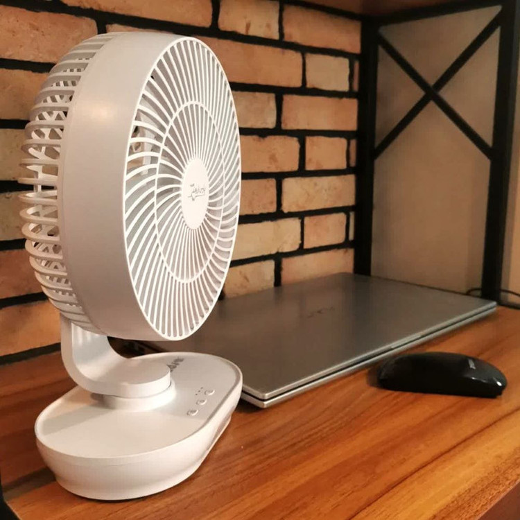 پنکه شارژی گردان محصولی از شرکت پارس اروند الکتریک میباشد. این محصول از باتری قابل شارژ داخلی تغذیه میکند و فن آن با سه سرعت کم ، متوسط و زیاد میتواند در فصل گرما ، در نبود برق شما را خنک کند. همچنین با فعال کردن چرخش خودکار ، میتوانید توزیع باد متعادل را داشته باشید. روی پایه ی پنکه چراغی طراحی شده که در تاریکی میتوانید آن را روشن نمایید. این محصول به صورت رومیزی طراحی شده که قابلیت استفاده در محیط کار یا منزل را دارد. باتری داخلی توسط درگاه USB TypeC شارژ می گردد.