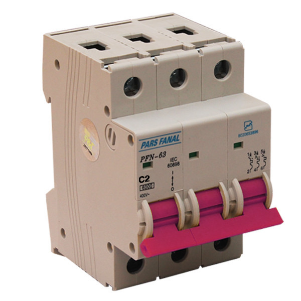 کلید مینیاتوری (MCB ) وسیله ای حفاظتی است که از تجهیزات الکتریکی و صنعتی در برابر آسیب های ناشی از اضافه بار و یا اتصال کوتاه محافظت می نماید.کلید های مینیاتوری جریان متناوب پارس فانال در سه تیپ روشنایی (B) ، موتوری (C) و سخت موتوری (D) در انواع تک پل ، تک پل با نول (1P+N) ، دو پل ، سه پل ، سه پل با نول (3P+N) و چهار پل تولید می شوند. این محصول کلید مینیاتوری سه پل 2 آمپر تیپ C با ظرفیت قطع 6KA می باشد.