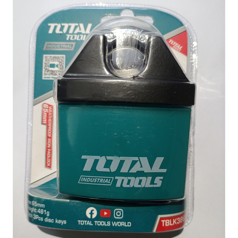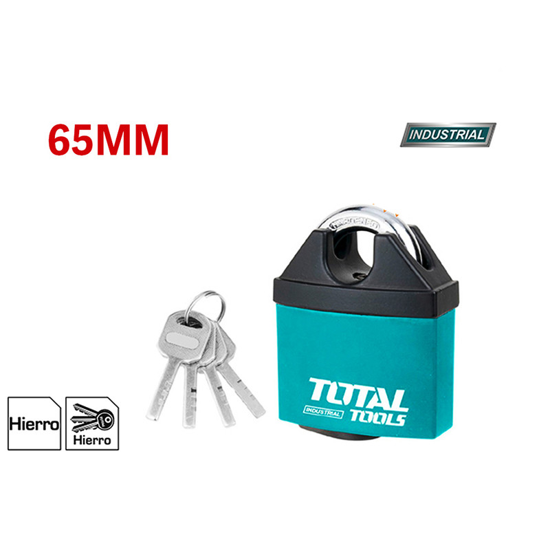قفل آویز 65 میلیمتر صنعتی و ضد آب توتال دارای سه عدد کلید برنجی کامپیوتری ضد سرقت کد TBLK38651 یک قفل ضد سرقت چند منظوره میباشد . این قفل آبکاری شده بسیار مقاوم در برابر زنگ زدن و مناسب برای استفاده در محیط های بارانی و مرطوب میباشد و بنا بر اظهار کارخانه تولید کننده ( توتال ) کیفیت صنعتی داشته و تمام المانهای ساچمه و قسمت های مربوط به تحرک ساچمه ای از برنج ساخته شده است . حلقه های آویز آن دارای محافظت در مقابل انبرهای برش قفل بوده که باعث ضد سرقت بودن آن میشود . شرکت توتال یک شرکت فرانسوی بوده که محصولات خود را در کشور چین با استفاده از مواد اولیه درجه یک تولید مینماید .