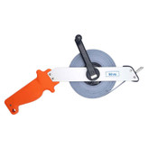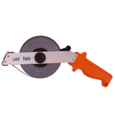 متر فلزی 50 متری که در تصویر میبینید نمونهای از مترهای دستی قرقرهای است که شرکت «رابین» (Rabin) آن را تولید و به بازار عرضه میشود. از آن برای متراژ طولهای زیاد استفاده میکنند. این ابزار دارای قرقره و دستهی کوچک است؛ این ویژگی باعث میشود تا کاربر بتواند بهراحتی از آن استفاده کند. همچنین برای کاهش فضای اشغال کنندهی متر و جلوگیری از آسیب دیدن ابزار، دستهی آن را به صورتی ساختهاند تا روی بدنهی متر جمع (تا) شود. این محصول شرکت رابین قابلیت اندازهگیری متراژهای طولانی را دارد و به کمک آن میتوانید تا 50 متر را اندازهگیری کنید. هر زمان که استفادهی کاربر از متر تمام شد، به کمک دستگیرهی میتواند درزمان کمی نوار متر را جمع کند. در نظر داشته باشید با توجه به جنس فلزی نوار، نباید آن را خم کنید. خم شدن نوار باعث شکسته شدن آن خواهد شد. این نوع متر در کارگاههای عمرانی و ساختمانی کاربرد فراوانی دارد. همچنین از این ابزار برای تخمین طول کابل مورد نیاز جهت نصب تجهیزات الکتریکی هم استفاده میکنند.