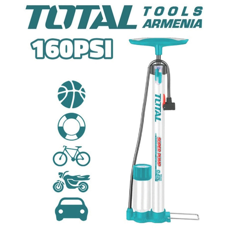 تلمبه دستی دسته بلند توتال مدل TMPP3811 یک تلمبه دستی پر قدرت است که برای باد کردن تایرهای خودرو، دوچرخه، موتورسیکلت و وسایل بادی مانند توپ و تشکهای بادی طراحی شده است . این محصول با بدنه فلزی مقاوم و داشتن دسته ارگونومیک و ضدلغزش و همچنین سبک و کم حجم بودن به راحتی قابل حمل بوده و برای استفاده در سفر ، داخل خودرو و خانه کاملا مناسب است . برند توتال به داشتن محصولاتی با دوام و با کیفیت شناخته میشود که این تلمبه دستی نیز از این قاعده مستثنی نیست .